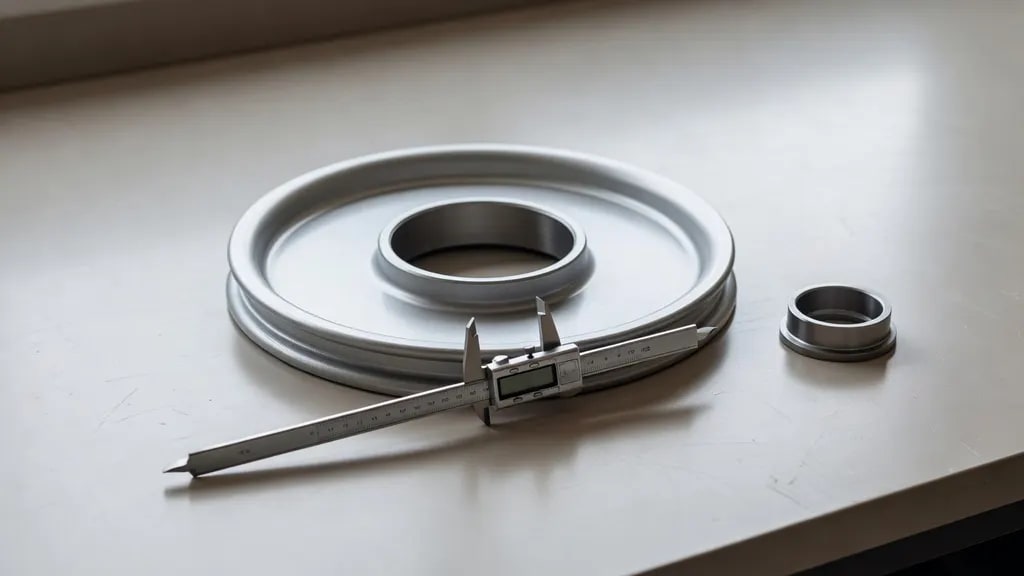 Do pomiaru najlepiej użyć precyzyjnej suwmiarki, ponieważ różnice decydujące o pasowaniu nie są widoczne bez narzędzi. Pomiar „na oko” lub przymierzanie przypadkowymi przedmiotami często kończy się błędnym doborem pierścieni albo błędną oceną, że felga nie pasuje. Suwmiarka pozwala też ocenić, czy otwór jest równy, czy ma lokalne uszkodzenia.
